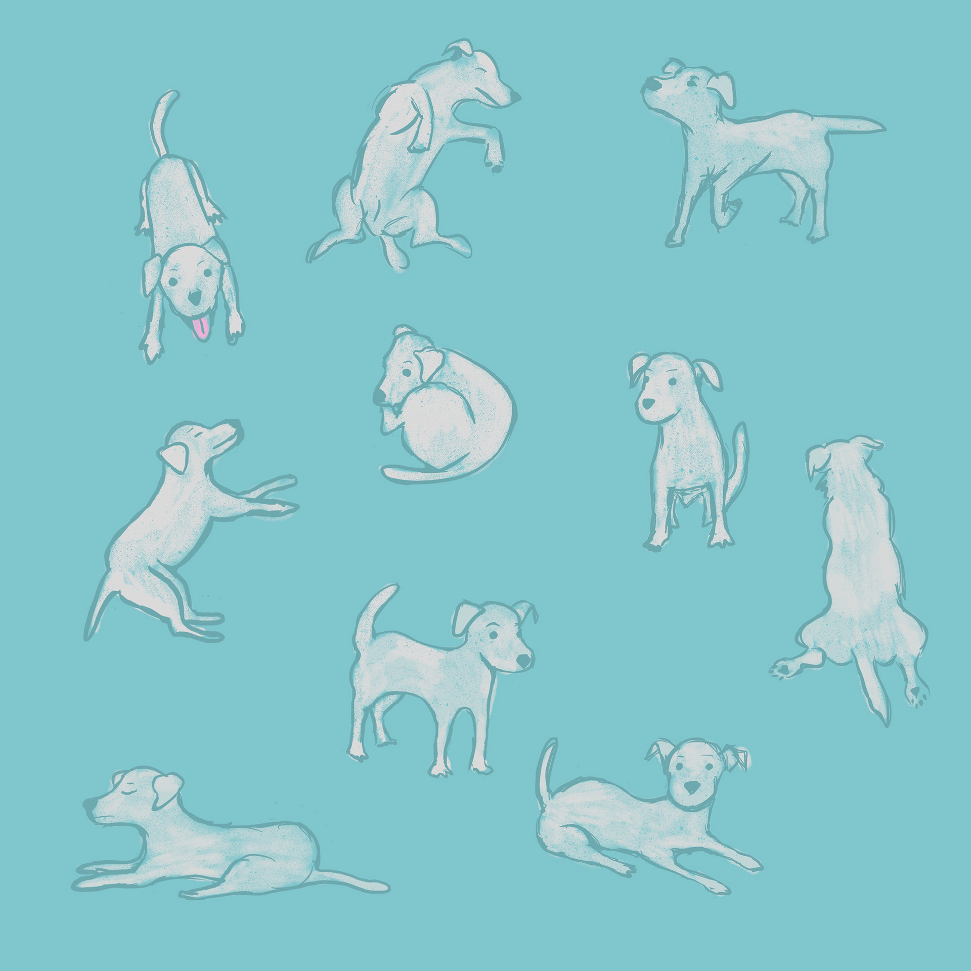 Digital illustrations, a playful study of my baby and my dog.